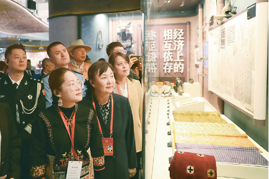 2024年9月28日至10月1日,全国少数民族参观团在北京参观考察,感受新时代伟大成就。图为参观团在民族文化宫参观铸牢中华民族共同体意识文物古籍展,了解中华民族共同体形成发展的历史。 民族画报社供图 陈涛/摄